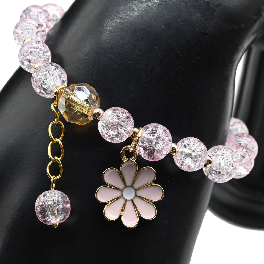 Браслет из сахарного кварца Ромашка шарик 8мм цв.розовый, 17см