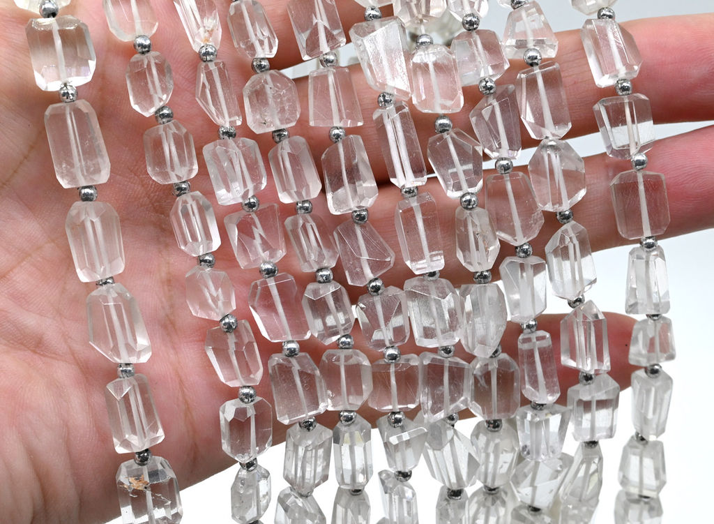 Бусина из натурального горного хрусталя в форме граненой галтовки.