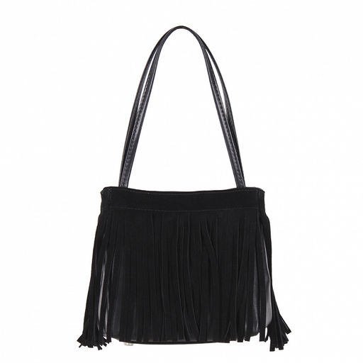Интересная сумка с бахромой, выполнена из замши. Дополнена серебристой фурнитурой. Данная модель закрывается на кнопку. Каркас мягкий. Носится в руке за ручку или на плече за ремень. Дополнительно в комплекте имеется петелька.