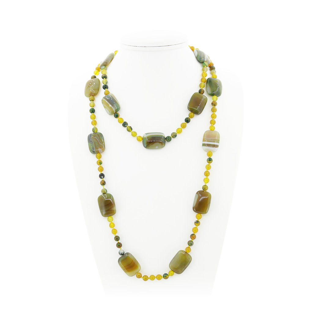 • Агат зеленый с желтым (Бразилия), плоские прямоугольные бусины 18x25мм, бусы "Гармония" длиной 116см