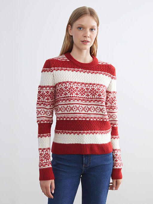 Bisiklet Yaka Desenli Kad?n Triko Kazak