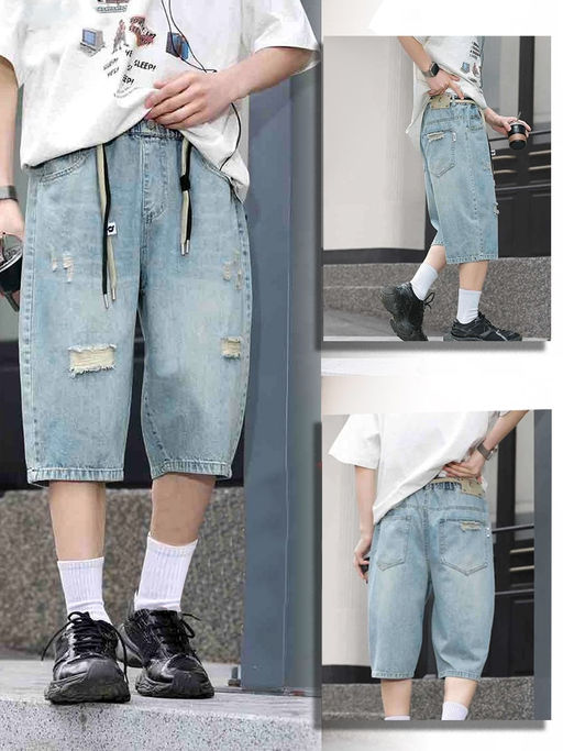Удлинённые джинсовые шорты для детей, выполненные из хлопкового денима - прочной и износостойкой ткани, которая хорошо пропускает воздух и обеспечивает комфортную носку в жаркие дни. Они легко комбинируются с любой майкой или футболкой. Пояс на широкой, эластичной резинке, без молнии и пуговиц. Акцентные детали в виде искусственных потёртостей.