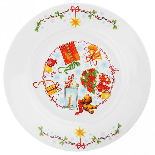 • Тарелка мелкая фарфоровая "Новогодние подарки" д200мм, h25мм, гладкий край (Россия)