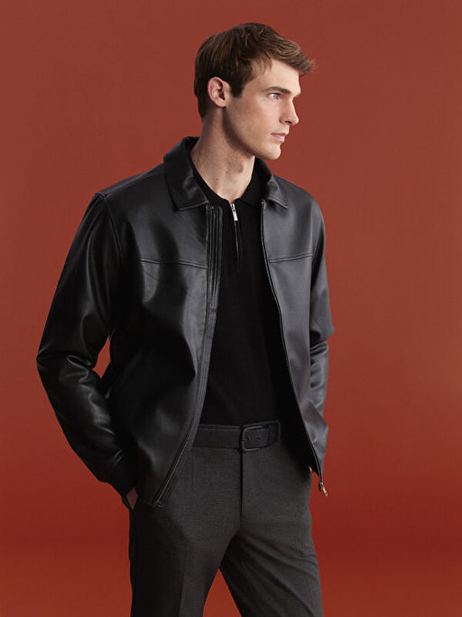 • Standart Kal?p Erkek Deri G?r?n?ml? Mont