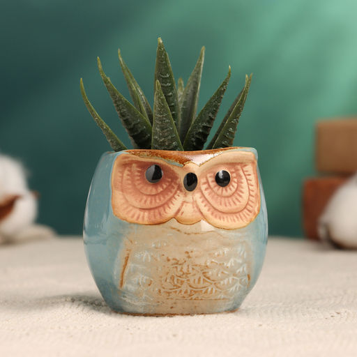 Декоративный горшок для цветов «Сова Ава» керамический, 100 мл, 6.5×6.5×6 см, голубой