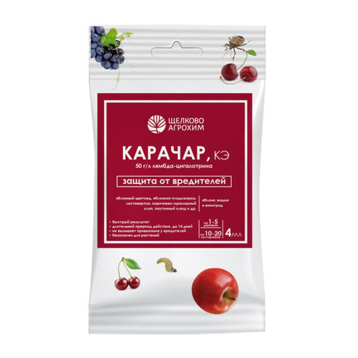 * назначение: от паутинных клещей, яблонных цветоедов, яблонных плодожорок, листоверток, коричнево-мраморных клопов, паутинных клещей;