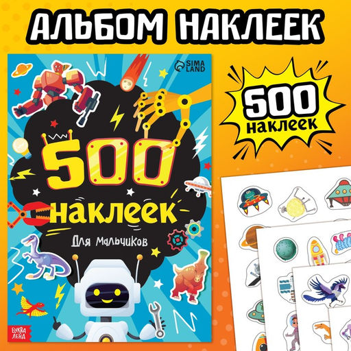 В альбоме представлено 500 стикеров с красочными изображениями роботов, инопланетян, динозавров, а также разного вида транспорта. Такое разнообразие наклеек оценит каждый мальчишка.