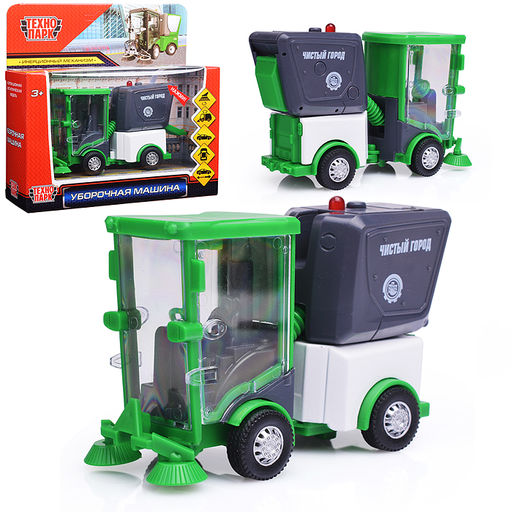• Машина металл "Уборочная машина" 11 см, свет-звук, двери, багаж, зеленый,