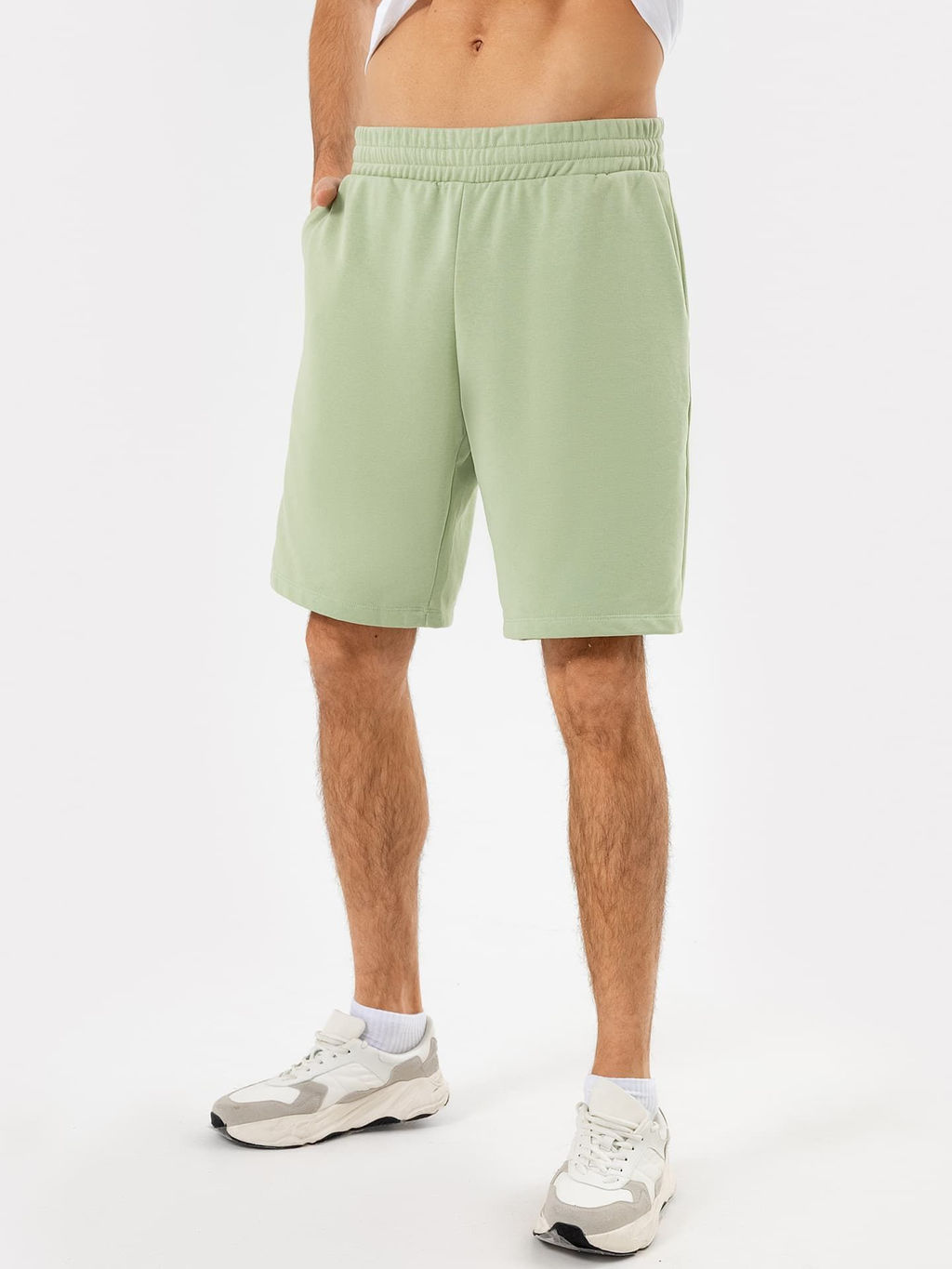 Мужские шорты из высококачественного хлопка. Идеально подойдут для спорта, повседневных дел и отдыха. Шорты длиной до колен с классической линией талии. Пояс цельнокроеный с эластичной тесьмой внутри. На передней части пояса пробиты петли и втянут шнур. По переду обработаны карманы в боковых швах. На задней правой детали накладной карман. Базовые шорты мужские мягкие и комфортные в носке, не сковывают движения. Материал прекрасно держит форму, не скатывается после стирок и позволяет коже дышать в жаркий день. Высокое качество пошива шорт позволяет носить их на ежедневной основе. Широкий размерный ряд, базовые цвета делают шорты мужские универсальной вещью. Модель подходит для любого типа мужской фигуры. Сочетание практичных износостойких материалов и модного дизайна делает эти шорты незаменимой вещью в вашем гардеробе. Гармонично смотрятся с майками, футболками, толстовками и джемперами. Рекомендуем эту трендовую модель для создания модных летних аутфитов на каждый день для встреч с друзьями, активного отдыха и прогулок! -- Характеристики -- Состав: 19% полиэстер / 81% хлопок Страна производства: Узбекистан Длина изделия по боковому шву - низ, см: 40.0 Длина брючин по внутр. шву, см: 25.0 Ширина брючин - низ, см: 31.5 Фактура материала: футер Тип посадки: средняя Тип карманов: с отрезным бочком Вид застежки: без застежки Особенности модели: нет Декоративные элементы: без элементов Уход за вещами: деликатная стирка при 30 градусах