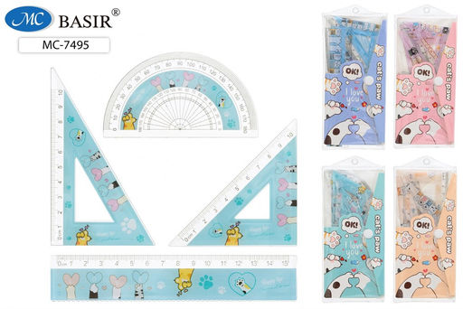 • Набор чертежный Basir "Лапки" (MC-7495) треуг.2шт., лин.15см., транспортир, с рисунком