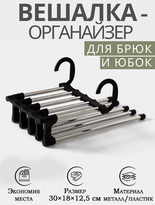 • Вешалка для брюк и юбок Доляна, 30×18×12.5 см, 5 спиц, раздвижная, чёрная
