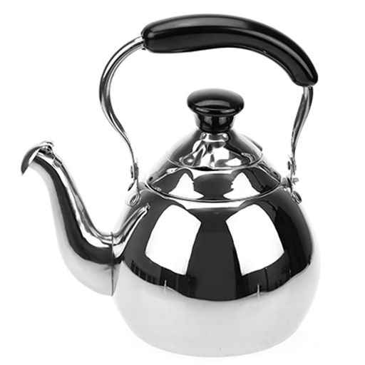 • "Капля" Чайник из нержавеющей стали 1л, д13см h15см, со встроенным в крышку свистком, подвижная бакелитовая ручка, цветная коробка (Китай)
