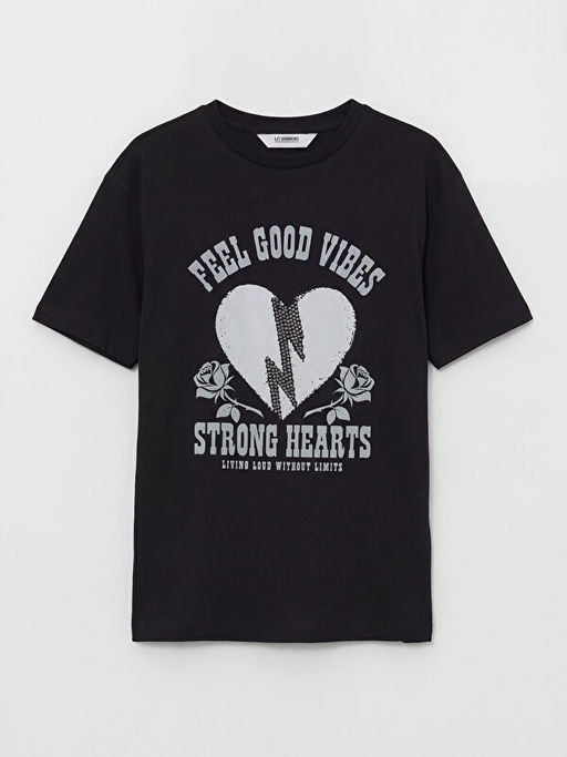 Bisiklet Yaka Bask?l? K?z ?ocuk Ti??rt