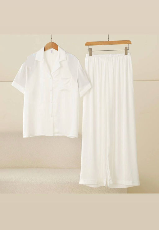 K11892 Костюм домашний: брюки палаццо и рубашка БЕЛЫЙ