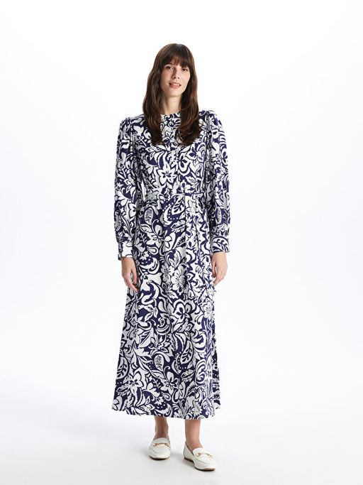 • Hakim Yaka Desenli Uzun Kollu Elbise