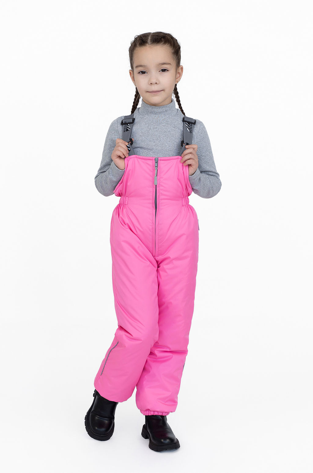 Зимой ребёнку будет комфортно гулять на улице в тёплом полукомбинезоне розового цвета. Изделие имеет регулируемые лямки-резинки и молнию-застёжку на груди. В зону поясницы и в низ штанин вставлены резинки. Верх полукомбинезона выполнен из ветрозащитного дюспо малинового цвета. Подклад сшит из мягкого флиса и таффеты, в качестве утеплителя использован тинсулейн термо.