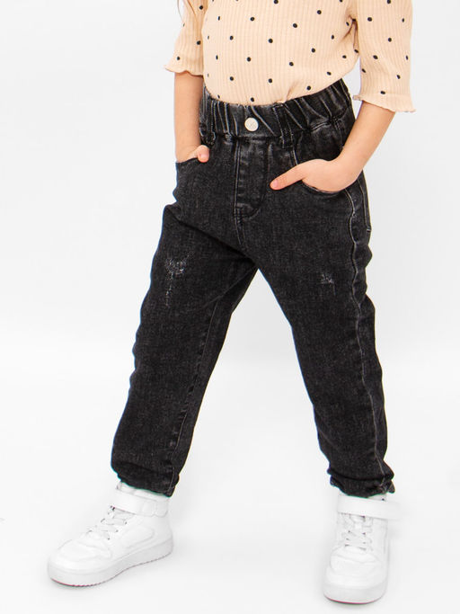 Джинсы детские Rong Rong. Трендовая модель из эластичного денима, на широкой резинке, без молнии и пуговиц. Брючины свободные в районе бедер и зауженные к низу.95% хлопок, 5% полиэстер