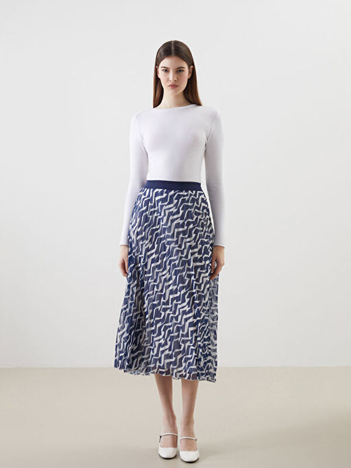 • Beli Lastikli Desenli ?ifon Kad?n Pileli Etek
