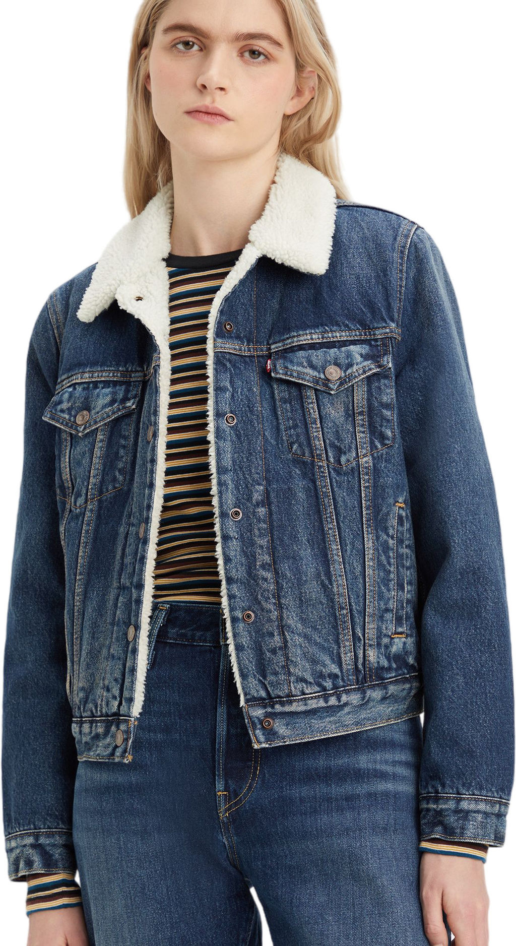 Куртка Levi's Original Trucker Jacket с утеплителем из шерпы - это классический предмет одежды, без которого не обходится ни один гардероб. Представляет собой уютную версию нашей оригинальной куртки Trucker с ворсистой подкладкой из шерпы для дополнительного тепла. Эта удивительно универсальная вещь сочетает в себе прохладу и уют, сохраняя при этом такую ​​же аутентичность, как и ее тезка. Мягкая стеганая подкладка в рукавах. Эта культовая незаменимая вещь действительно сидит хорошо. Заостренный воротник. Планка с пуговицами спереди. Накладные карманы на груди с клапанами на пуговицах. Боковые карманы для рук. Планка на кнопках спереди. Длинные рукова.