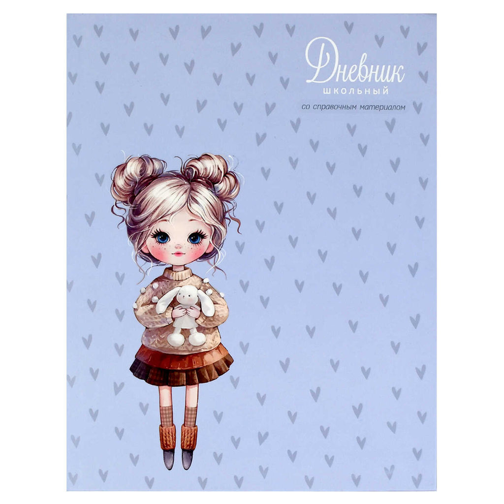 Дневник школьный арт. 73080 ДЕВОЧКА С ЗАЙКОЙ / интегральный переплёт, А5+, 48 л., выборочный УФ-лак, матовая ламинация, печать в одну краску, универсальная шпаргалка/