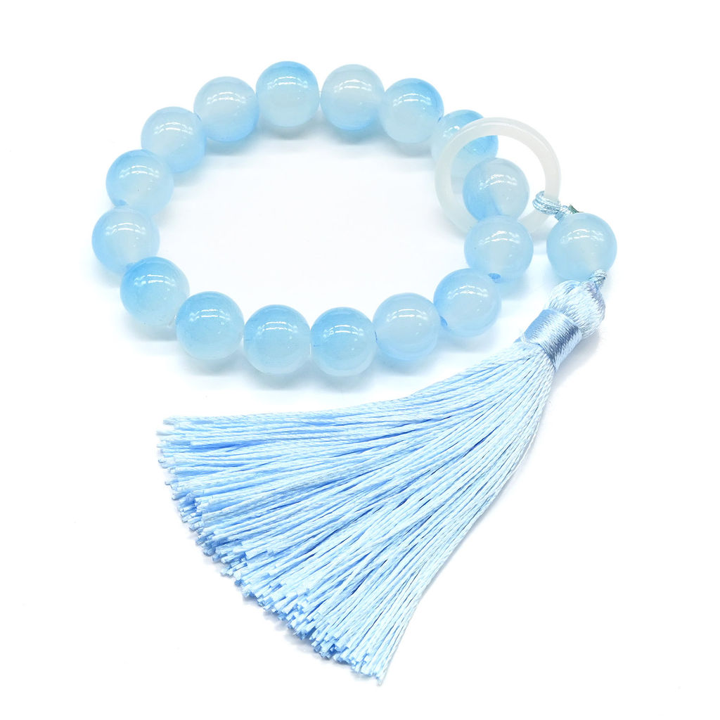 Браслет с кисточкой шарик 12мм цв.голубой, 16 бусин