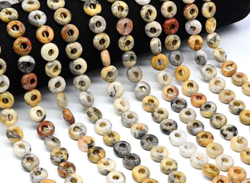 • Бусины из агата львиная шкура бублик 10*5мм, 39см, 39 бусин Радуга камня