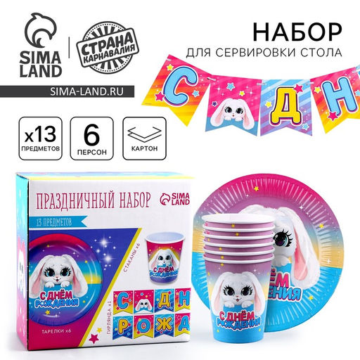Набор: Да. Количество персон: 6. В наборе, шт.: 13. Рисунок: Да. Тематика праздника: День рождения. Бесплатная доставка: Да. Наша разработка: Да.
