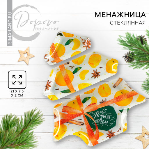 • Менажница стеклянная в форме ёлки «С Новым годом», 29 х 26 см