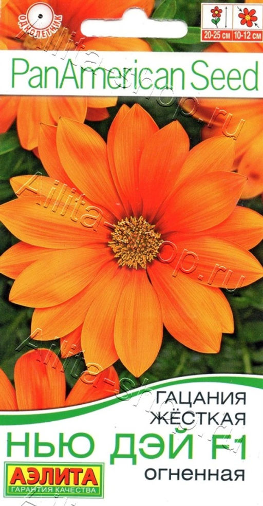 Гибридная серия Нью Дэй F1 создавалась с целью получения коренастых, компактных растений с более короткими цветоносами и более крупными соцветиями, чем у конкурирующих серий. Это успешный результат селекции американской компании PanAmerican Seed. Данный гибрид имеет аккуратный и гармоничный вид небольшого кустика, высотой 20-25 см и шириной 15-20 см. Диаметр корзинок достигает 10-12 см. Цветение очень равномерное и достаточно обильное. Гибрид исключительно солнцелюбивый, засухоустойчивый. Хорошо подходит для оформления жарких, засушливых уголков сада и солнечных балконов.