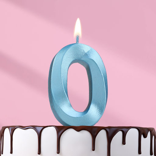 • Свеча в торт «Грань», цифра 0, голубой металлик, 6.5 см