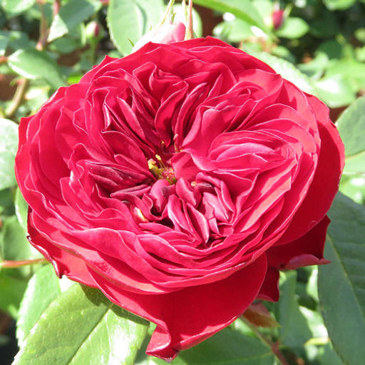 Флорибунда. Бокаловидные бутоны, появляющиеся на культуре, окрашены в розово-кремовый оттенок. По мере распускания они приобретают сочный ярко-красный, а ближе к осени темно-красный или винный тон. Цветки этой розы махровые, крупные, до 12см в диаметре. Каждый из них состоит примерно из 80 лепестков, отчего выглядит плотно набитым. Форма цветка ностальгическая, старинная, розетковидная. На одном стебле формируется от 3 до 5 бутонов со слабым, но стойким и очень приятным запахом. Цветет непрерывно в течение всего вегетационного периода, вплоть до наступления поздней осени.