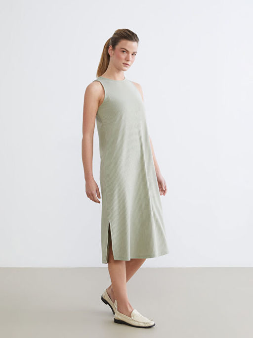 Bisiklet Yaka ?izgili Y?rtma?l? Elbise