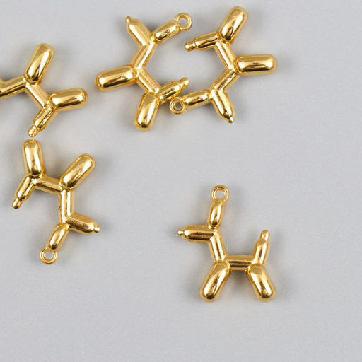 • Цена за 5 шт. Металлический элемент, декоративная подвеска «Арт Узор. Надувной шарик: собака», золото, 1.8×2 см