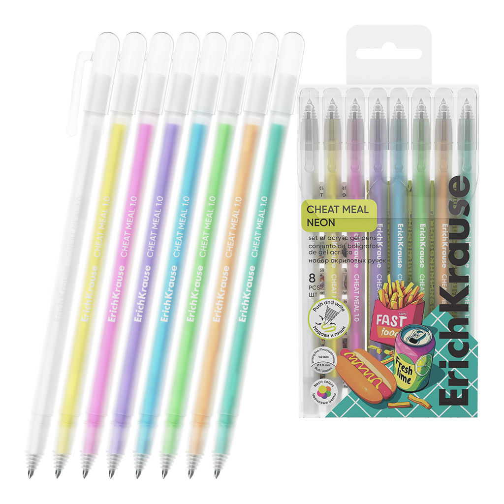 АКЦИЯ Цена за 24 шт. Набор из 8 ручек акриловых ErichKrause Cheat Meal 1.0, цвет чернил ассорти (в пэт-боксе)