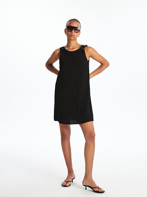 Bisiklet Yaka Dokulu A Kesim Mini Elbise