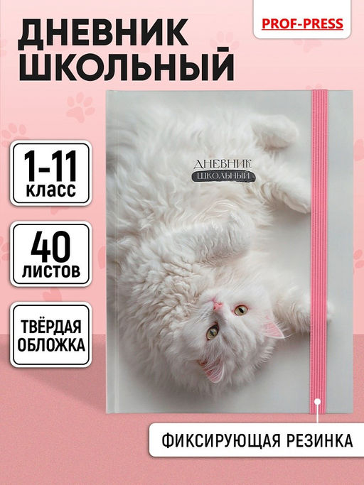 Дневник тв. об., 1-11 кл. "Нежный котик -2" (Д40-9436, Prof-Press) матовая ламинация, выб. лак, на резинке