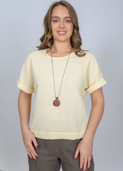 Легкая летняя блуза из муслина. Рукав цельнокроеный, спущенный. Изделие отлично сочетается с любыми брюками, шортами, юбками из нашего каталога. По передней половинке блуза имеет нагрудную вытачку, что обеспечивает хорошую посадку на фигуру любой полноты.