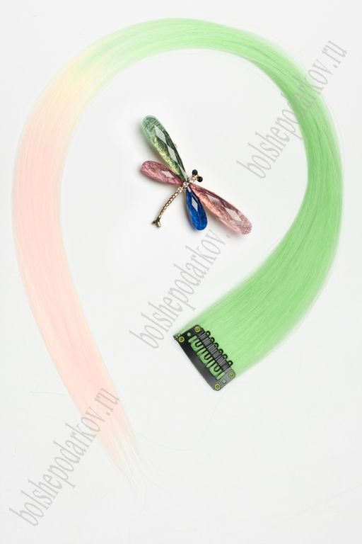 • Прядь волос двухцветная на заколке (6 шт) SF-3045, салатовый/св.-розовый