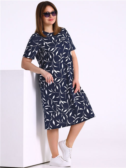 платье,хлопок 100%,кулир / хлопок 100%,- / белые листья на темно-синем / - / - / - / -,Женское домашнее платье выполнено из лёгкого хлопкового полотна. Изделие полуприлегающего силуэта, с короткими рукавами и карманами в боковых швах.. Платье украшено набивкой. Уход: только машинная стирка (руками не стирать!) при температуре 40 градусов, без предварительного замачивания.