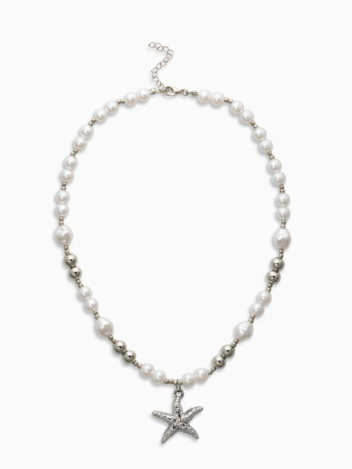• Кулон на жемчужных бусах «Морская звезда», 55 см, белый в серебре