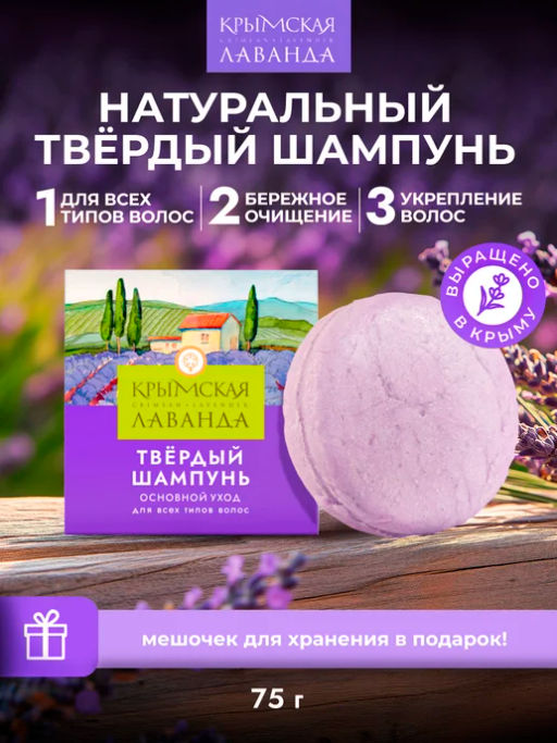 • Твёрдый шампунь Крымская лаванда Основной уход для всех типов волос,75г