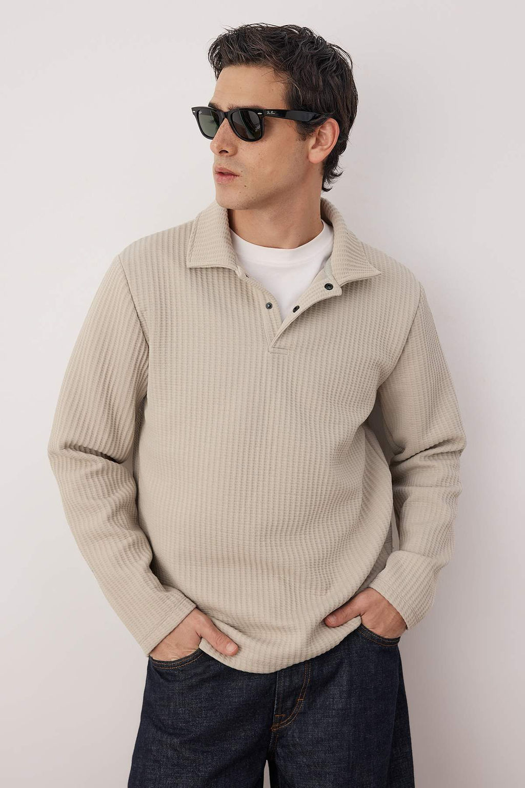 Tas Relaxed Kesim Waffle Dokulu Polo Yaka Sweatshirt TMNAW26SW00058