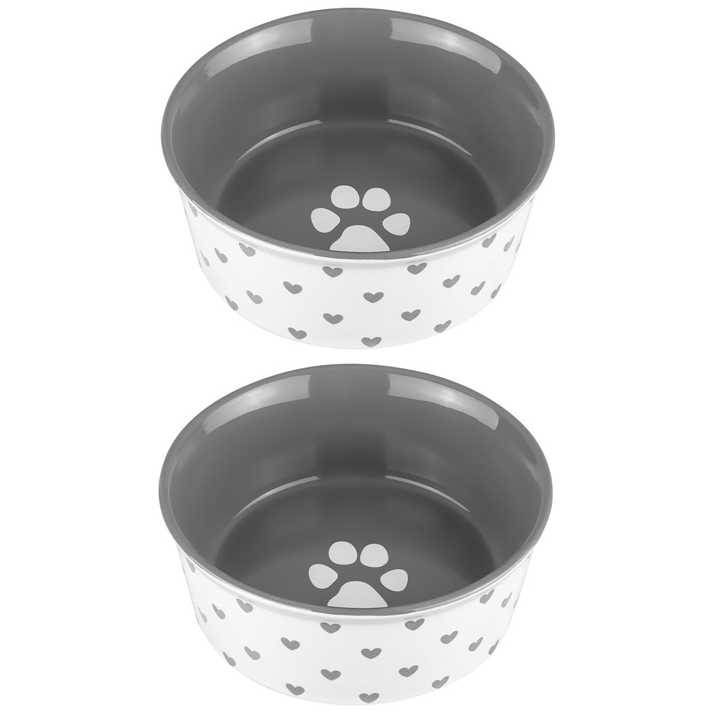 Набор 2 мисок для домашних питомцев 400 мл 13,5*13,5*5 см "Лапка на сером и сердечки" керамика