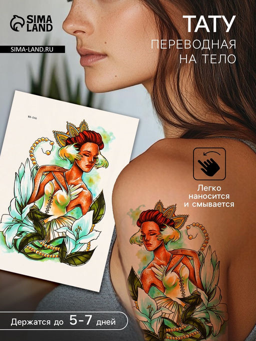 • Цена за 2 шт. Переводная тату на тело цветная Принцесса Лилий, 26.1?14.6 см