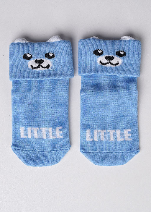 ясельные носки для мальчика с мордочкой мишки и 3Д ушками, по следу нанесены силиконовые стоперы 80% хлопок, 18% полиамид, 2% эластан