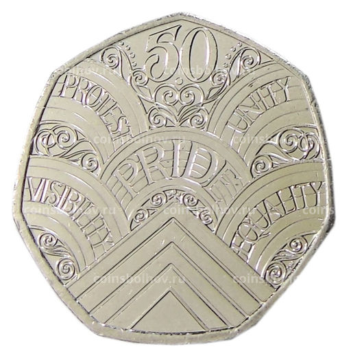 • Монета 50 пенсов 2022 года Великобритания 50 лет декриминализации гомосексуализма в Великобритании