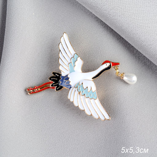 • Брошь Аист 5 см / GM273-3 / жемчуг