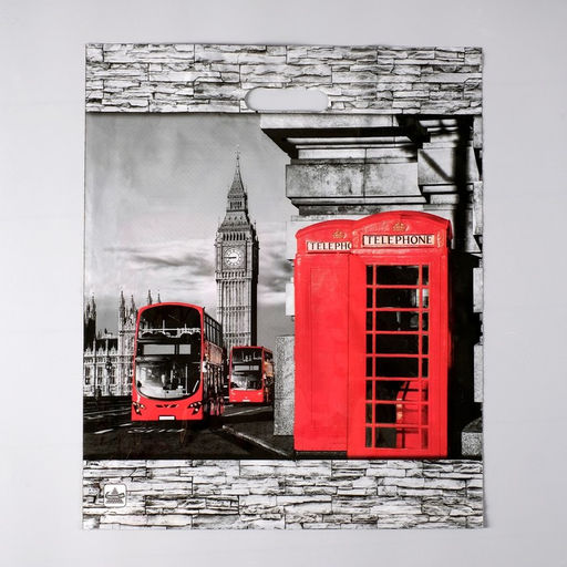 Цена за 50 шт. Пакет "Лондон", полиэтиленовый с вырубной ручкой, 60 мкм 38 х 45 см