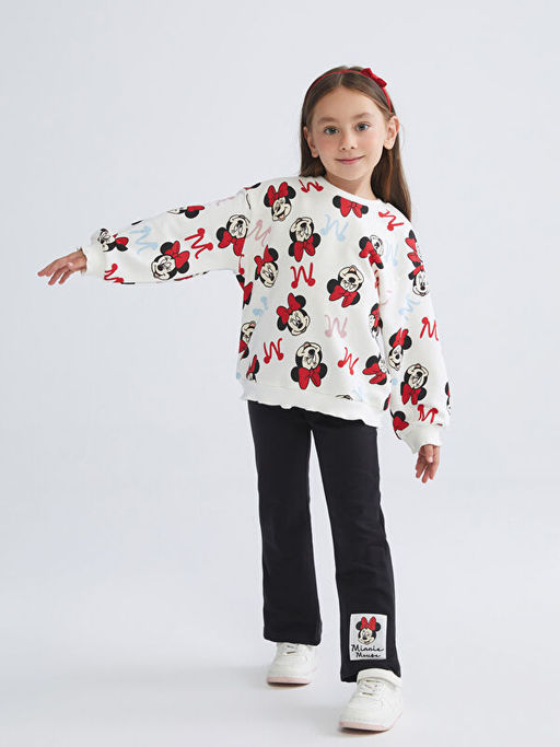 Minnie Mouse Bask?l? K?z ?ocuk Sweatshirt ve Tayt Pantolon 2li