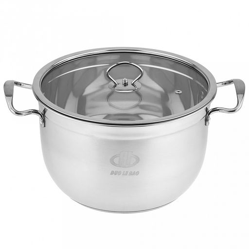 • Кастрюля из нержавеющей стали "Аксай" 8л, д27,5см, h17см, s0,35мм, матовая полировка, стеклянная крышка (общая h21см), металлические ручки, с теплораспределительным дном 0,5см, цветная коробка (Китай)